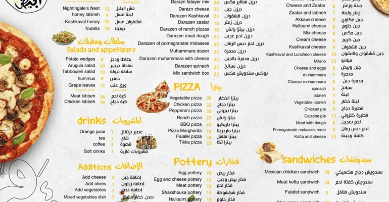 نقوم بتسليمك المنيو مفتوح المصدر (قابل للتعديل باي وقت علي الأسعار) وجاهز علي الطباعة فورا.
